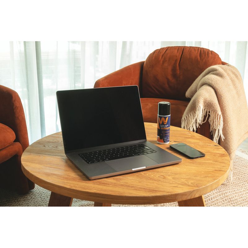 Il detergente Wpro è adatto a tutti i tipi di schermo (laptop, smartphone, tablet). Lascia un rivestimento antistatico che previene il deposito della polvere.